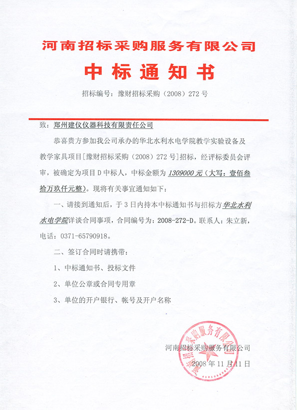豫財招標采購(2008)272號項目D