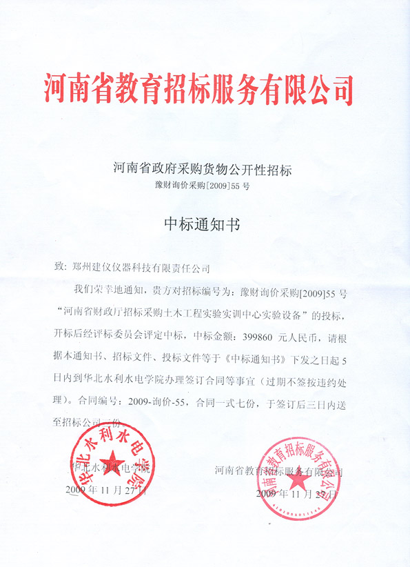 豫財詢價采購(2009)55號
