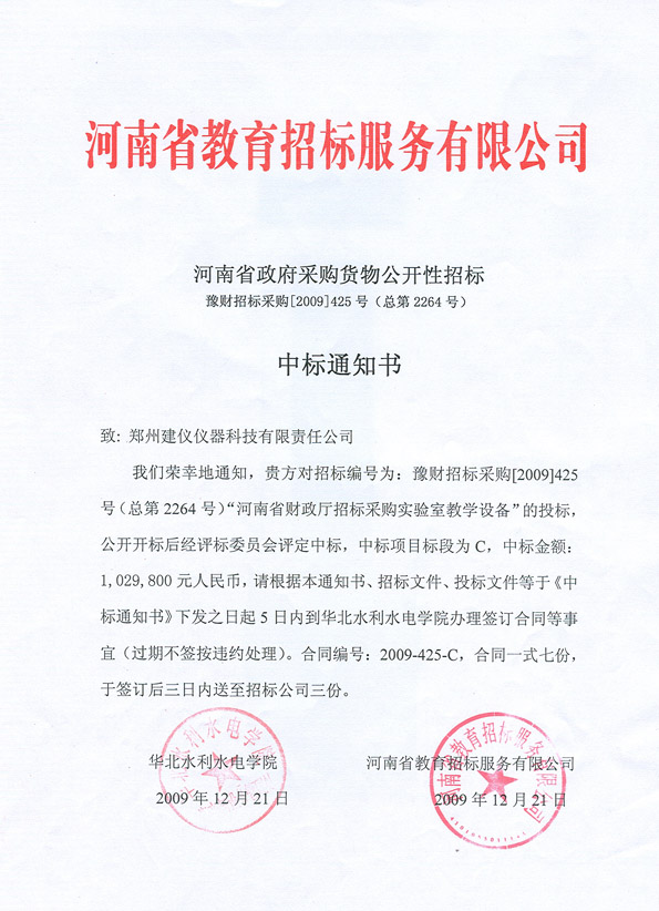 豫財招標采購(2009)425號項目C