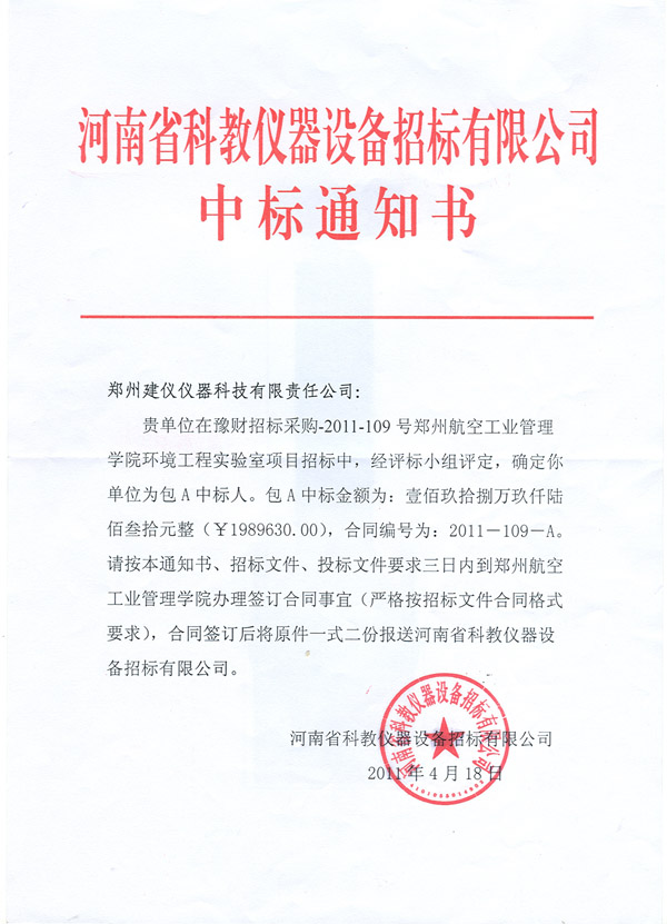 豫財招標采購【2011】109號