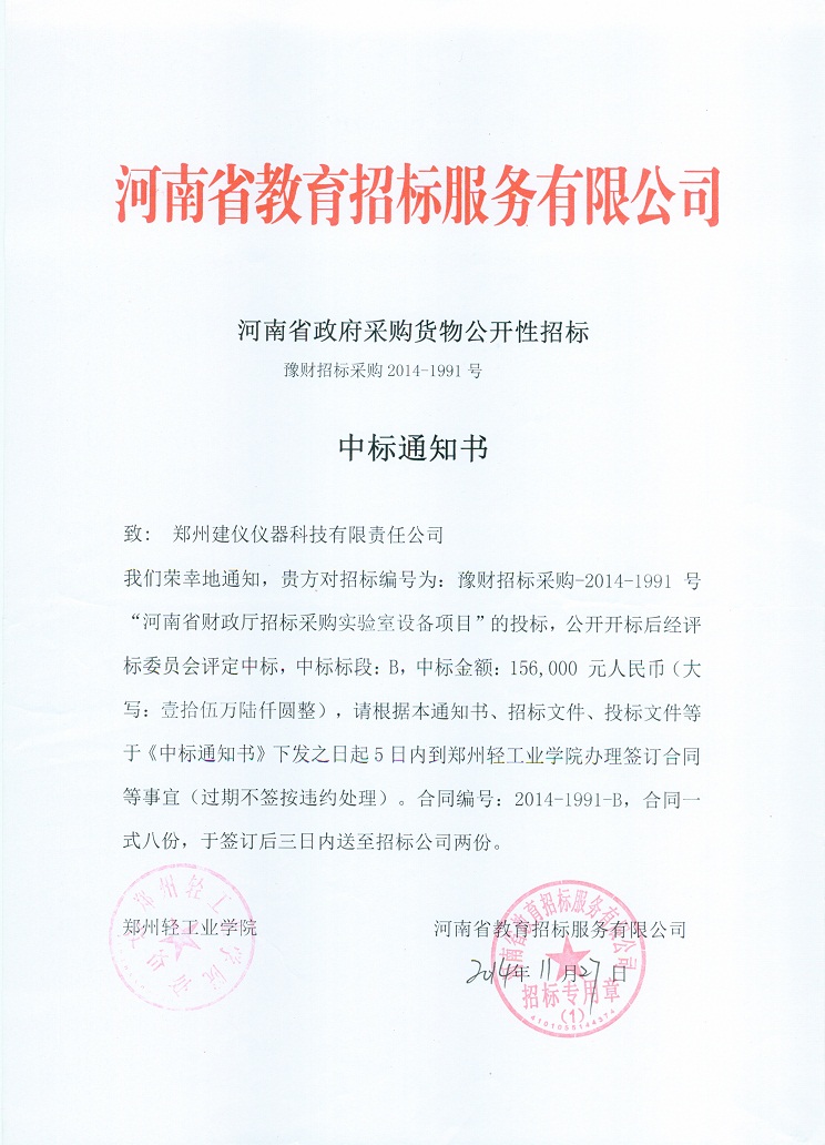 2014-1991中標(biāo)通知書