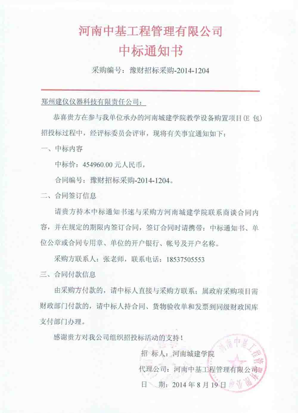 豫財招標采購2014-1204號E包