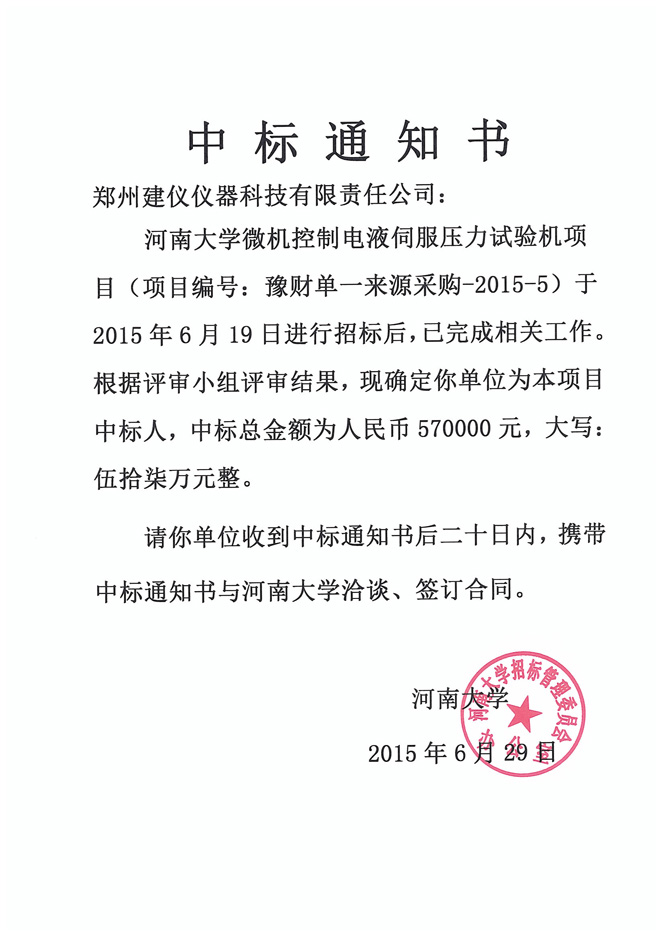 上一篇:河南質量工程職業技術學院PZC2014-9588Ag-46236(一標段)中標通知書