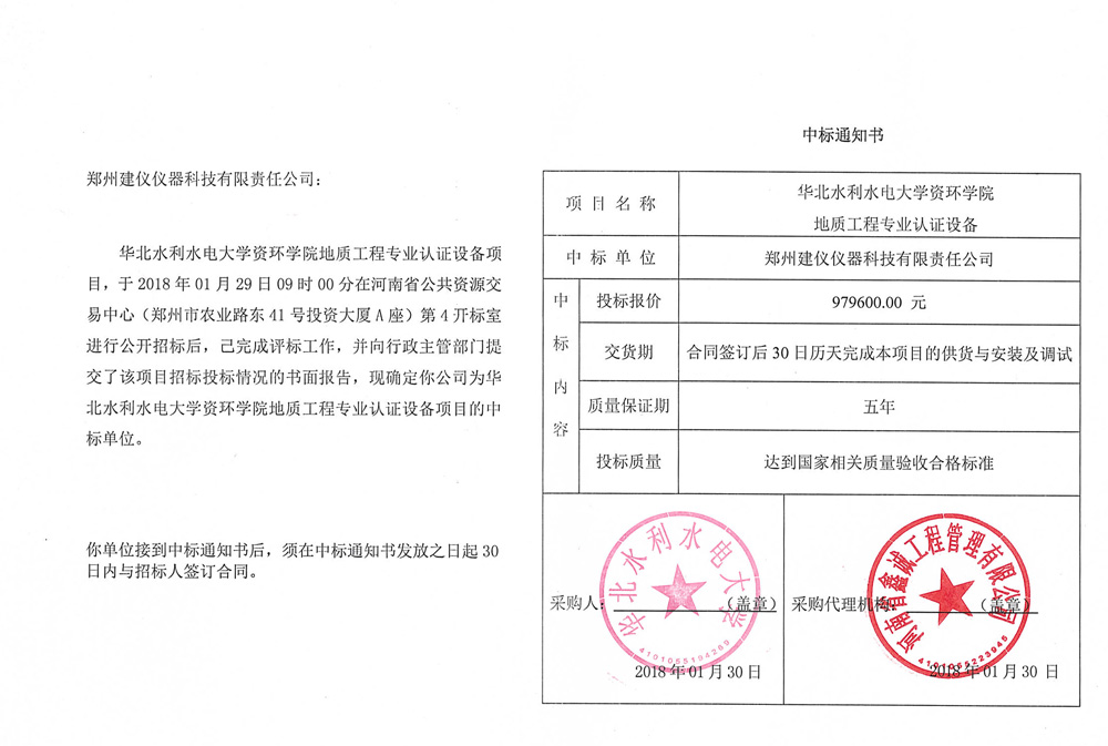 華北水利水電大學資環學院地質工程專業認證設備